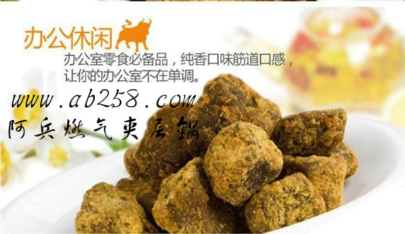 阿兵燃气夹层锅也是多种小零食必备之选哦!相信这个秋冬您在办公室一定不会无聊!阿兵额安琪夹层锅给您精品牛肉干,甜蜜的花生酥等各种小零食!嗨~~~~~~在山那边的朋友们,您的食品公司一定需要一台!!!!