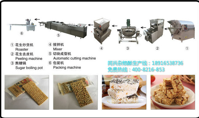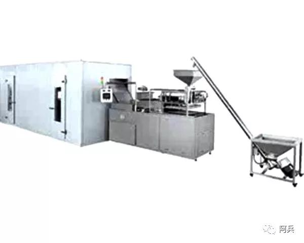 (图为:燕麦酥生产线 主要设备:风送机、双螺杆膨化机、糖果搅拌机、燕麦酥成型机)