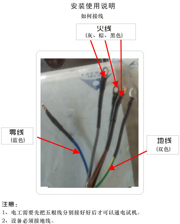 设备直接或相接漏电开关额度规格要大于或等于40A(3相4线漏电开关)且设备必须接地线。