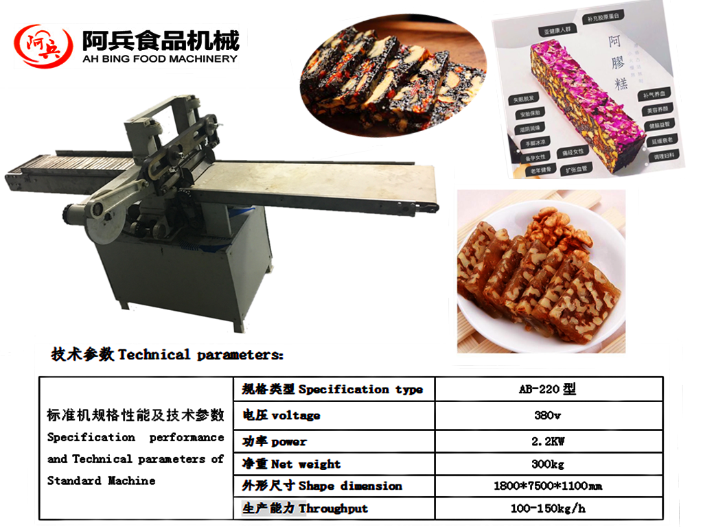 核桃糕切片机主要适用于做2-10mm厚的核桃糕片,花生片,阿胶糕片,梨膏糖等酥性硬质糖果糕点。