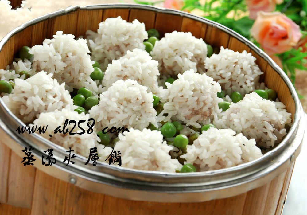 做珍珠圆子,→好用肥瘦三七开的肉做馅儿,太瘦不够滑润,太肥则口感油腻。圆子蒸熟之后,口感软糯适中,滋味鲜美可口,外层包裹的糯米粒粒竖起,晶莹洁白、油亮发光,真如颗颗珠圆玉润的珍珠一般让人不忍下筷