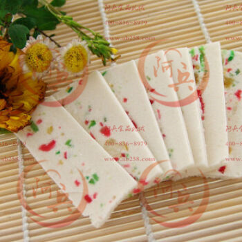 玉带糕是安徽省汉族糕类名特产品,做工讲究,质量上乘。清朝乾隆年间,一品玉带糕作为贡品,乾隆皇帝品尝后啧啧称赞,御封为“一品玉带”,此后声名远扬。玉带糕以冰糖、桃仁、红梅、青梅、桂花、莲子、桔饼、米粉、麻油为原料,经科学方法,采用传统工艺精制而成。黄色的核桃似黄金,绿色的青梅似翡翠,莲子和桔饼如同珍珠玛瑙;四周有米粉镶成的白边,酷象一条玉带。玉带糕不仅香甜可口,而且具有滋阴强身、润肠益气、清炎健胃、生津润肺等功能。