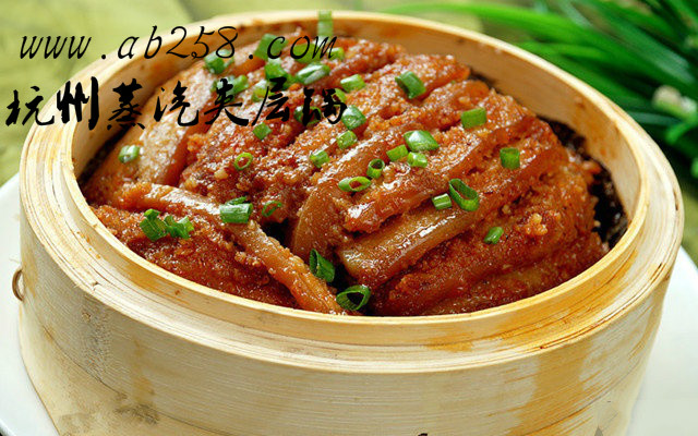 荷叶粉蒸肉是一款享有较高声誉的汉族名菜。在清末,相传其名与“西湖十景”的“曲院风荷”有关。它是用当时杭州的鲜荷叶,将炒熟的米粉和经调味的猪肉裹包起来蒸制而成,其味清香,鲜肥软糯而不腻,夏天食用很适合胃口。