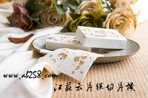 云片糕,芝麻糖花生糖切片厚度多个档位调节,厚度从1-5毫米任意调节,切出来的产品厚度均匀,产量高达50-200kg/小时。操作方便,采用不锈钢制作,干净卫生