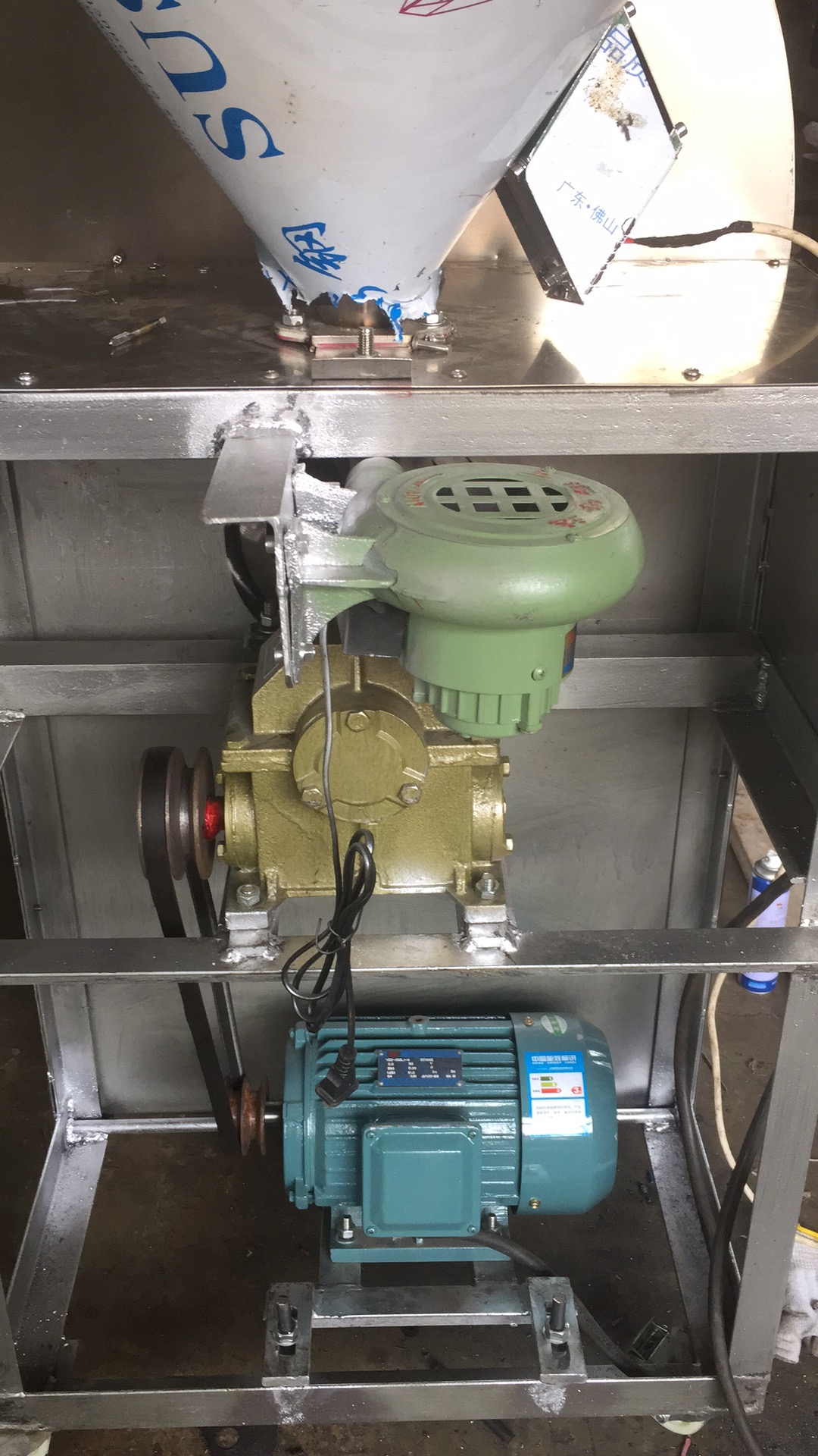 家庭炒米机有两个鼓风机,前端进料时吹走物料杂质,后端出料时可降温亦可分离沙子和杂质,这样一来出料干净,还可以在在出料口增加振动筛。