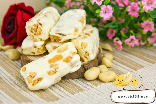 1.蛋白牛轧糖:早期的牛轧糖生产工艺,都是先制作一个蛋白泡沫,然后将糖和糖浆组成的浓缩糖液缓缓地分批加入蛋白泡沫体,→后制成一种含气泡的甜体,就是牛轧糖。