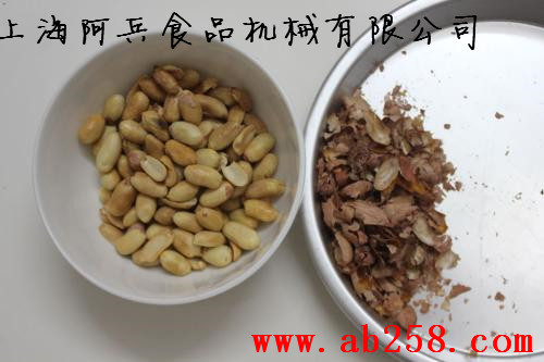 2.将烧好后的花生倒入自动脱皮机