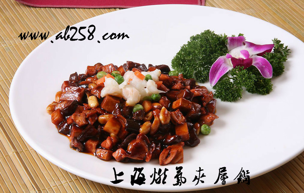 八宝辣酱是上海地区汉族名菜,色泽艳丽光亮,鲜辣辛香。它是由炒辣酱改良而来的。炒辣酱是个普通家常菜,以前在饭摊上供应,由于色深味浓,很适宜下饭。在40年代,九江路上的同龢馆厨师们参照上海本地菜“全家福”的烹制法,在炒好的辣酱上浇上一个虾仁“帽子”,又对炒辣酱的原料进行了调整充实,用虾仁、鸡肉、鸭肫、猪腿肉、肚子、开洋、香菇、笋片等八样主要原料烹制,故称它为“八宝辣酱”。“八宝辣酱”味道辣鲜而略甜,十分入味,大受食客的欢迎。后来,上海一些菜馆纷纷仿效,“八宝辣酱”就广为流传了。