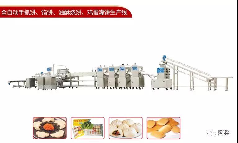 全新全自动手抓饼生产线、鸡蛋灌饼生产线占地小、产量高、低能耗、低投入,小时产量可达2000个以上。