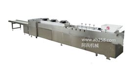 阿兵花生酥切块机(自动切块机)具有自动平压,自动切块机组成。把搅拌好的物料倒在机台上有四棍机组平压,稍加冷却即可中横竖切割,具有操作简单方便,常量高达300/公斤/小时。成品大小克重几乎保持一致。该切块机与食品接触部分的材质均符合食品—及卫生标准。主要针对长方块的产品进行一条龙生产;如:萨其马,米花糖,花生酥,花生糖,蛋苕酥,果仁酥等