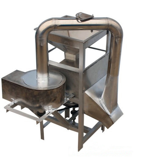 熟花生脱皮,花生炒制完毕后,冷凉后直接倒入料斗,热的物料不要投入