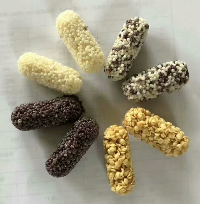 产品:各种形状可供,如球,棒,管,环,水果圈明星,在挤出机中,通过调整模具来达成。